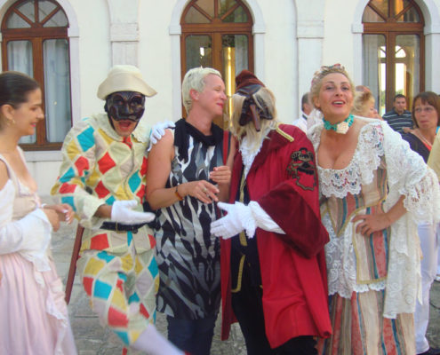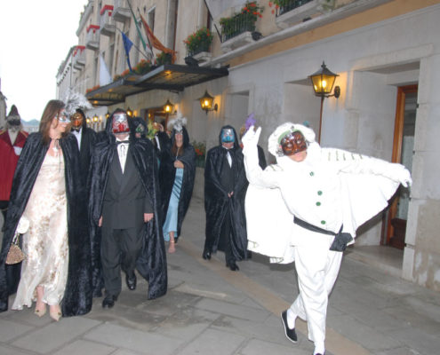 The tradition of commedia dell’arte relived through the staged performance of hilarious pantomimes adapted from medieval manuscripts and presented by four famous characters: Arlecchino, Colombina, Pantalone and Brighella.